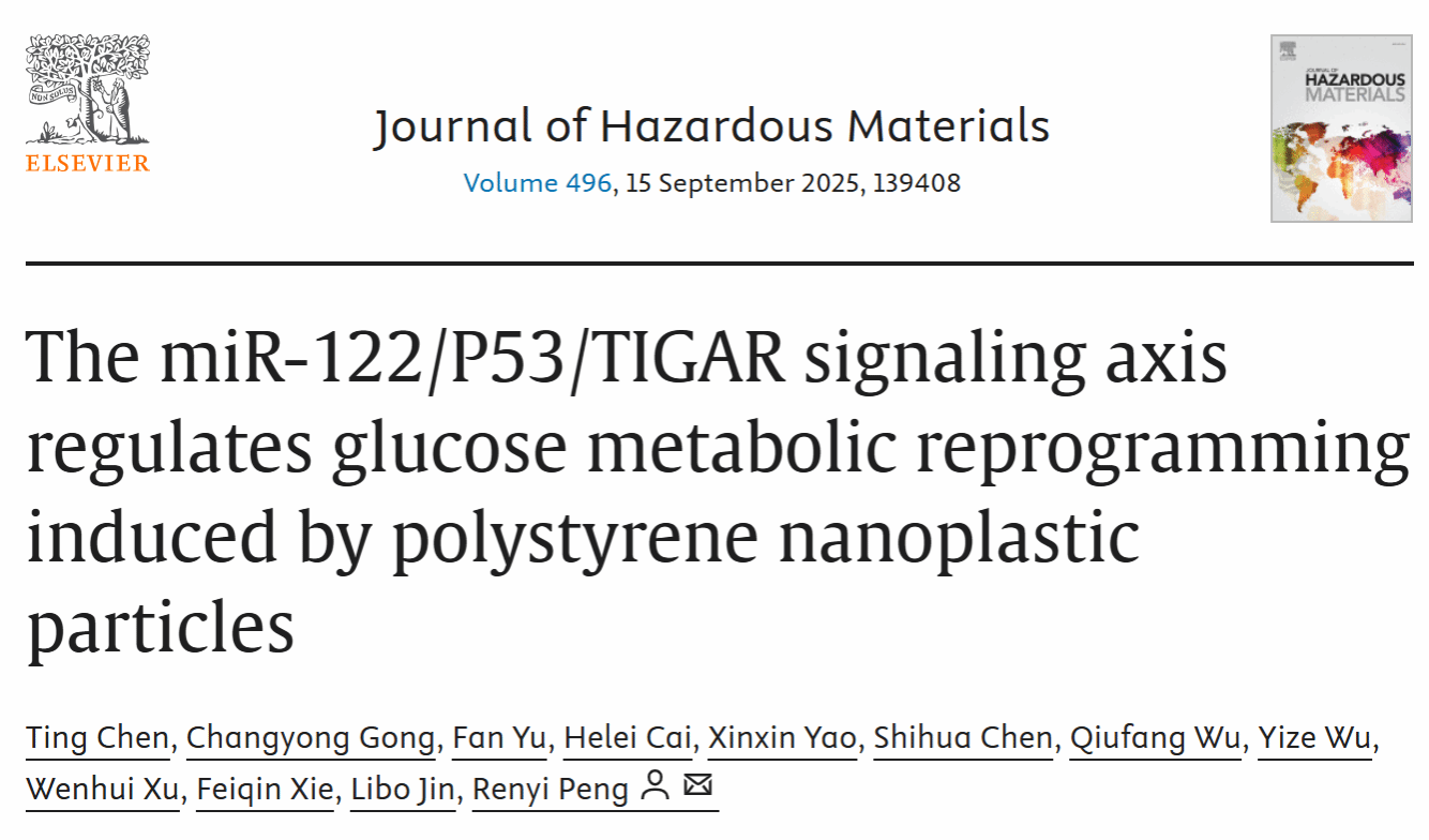 近日,完美(中国)官方生命与环境科学学院彭仁义课题组在中科院一区期刊《Journal of Hazardous Materials》(IF=11.3)发表了题为“The miRNA-122/P53/TIGAR signaling axis regulates glucose metabolic reprogramming induced by polystyrene nanoplastic particles”最新研究。该研究聚焦聚苯乙烯纳米塑料(PS-NPs)污染这一全球性威胁,深入探究其通过靶向miRNA-122对糖代谢重编程的复杂影响机制。