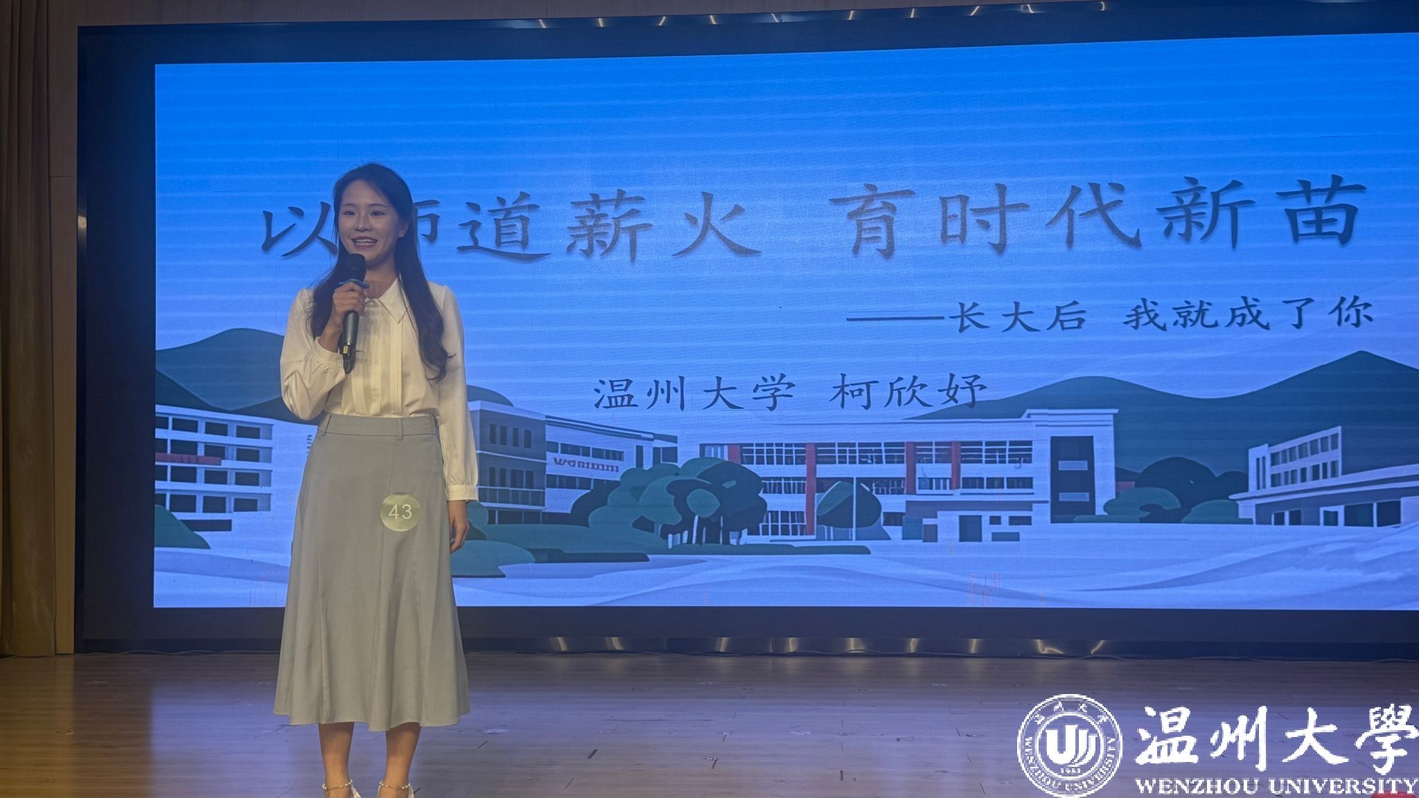 7月7日,由温州市教育局主办的2025年“师道传承·育见未来”青年师生讲述教育历史故事决赛在温州市市府路小学举行,经过温州市各县市区教育局、各在温高校的初赛选拔,共有47位选手进入决赛。完美网页版通过初赛选拔了8名师范生代表和1名教师代表参加比赛。
