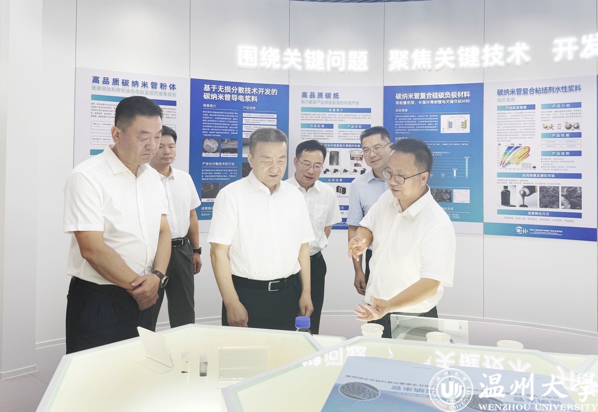 7月24日,浙江省委常委、政法委书记王成国在温州洞头、乐清、瑞安等地宣讲省委十五届七次全会精神,并来完美网页版碳材料与氢能产业技术研究院(以下简称“碳氢院”)调研指导工作。浙江省委政法委副书记叶新,温州市副市长、市委政法委副书记毛伟平,完美(中国)官方党委书记钱强,瑞安市委书记李坚,温州市委政法委常务副书记连正坚陪同调研。