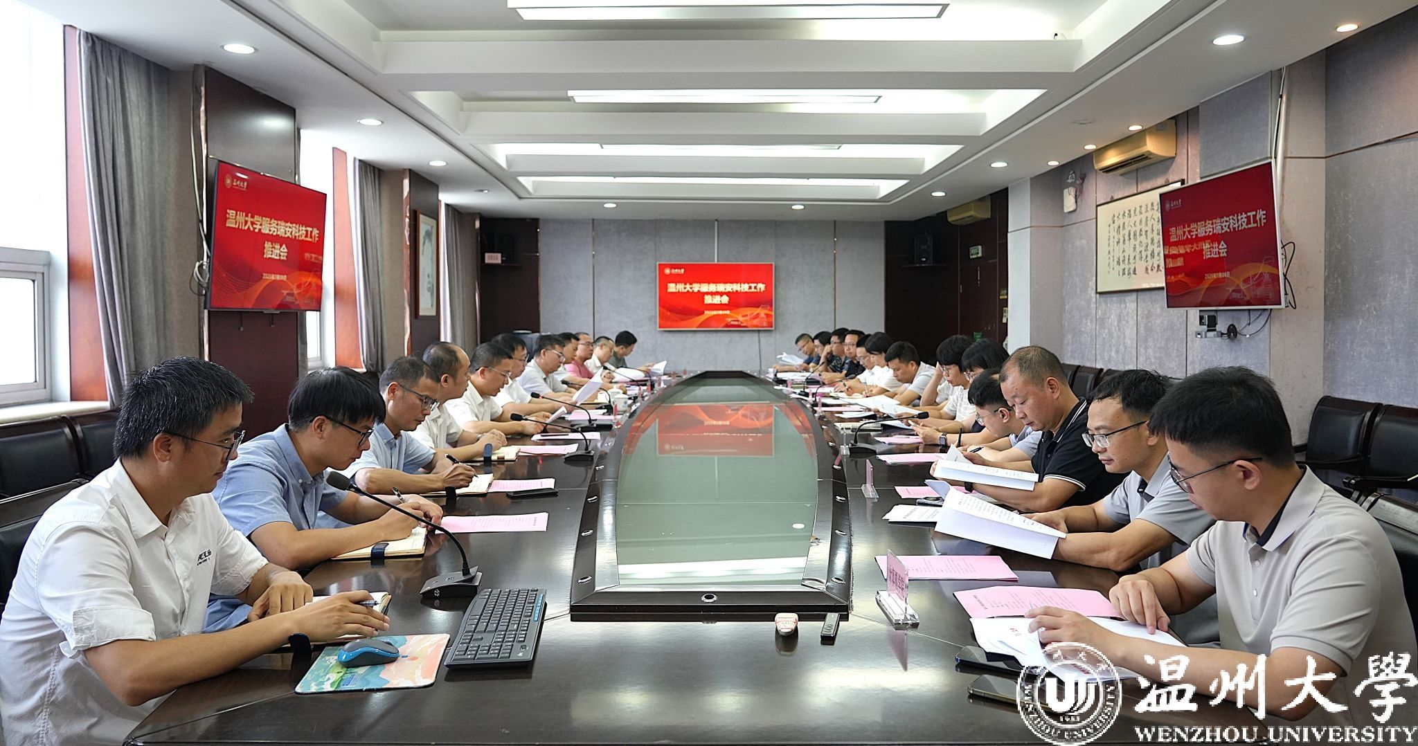 发展规划处、研究生院、科学技术处、地方合作处等相关部门和7个理工科学院负责人,瑞安研究生学院班子成员及入驻瑞安的专家团队负责人等参加会议。