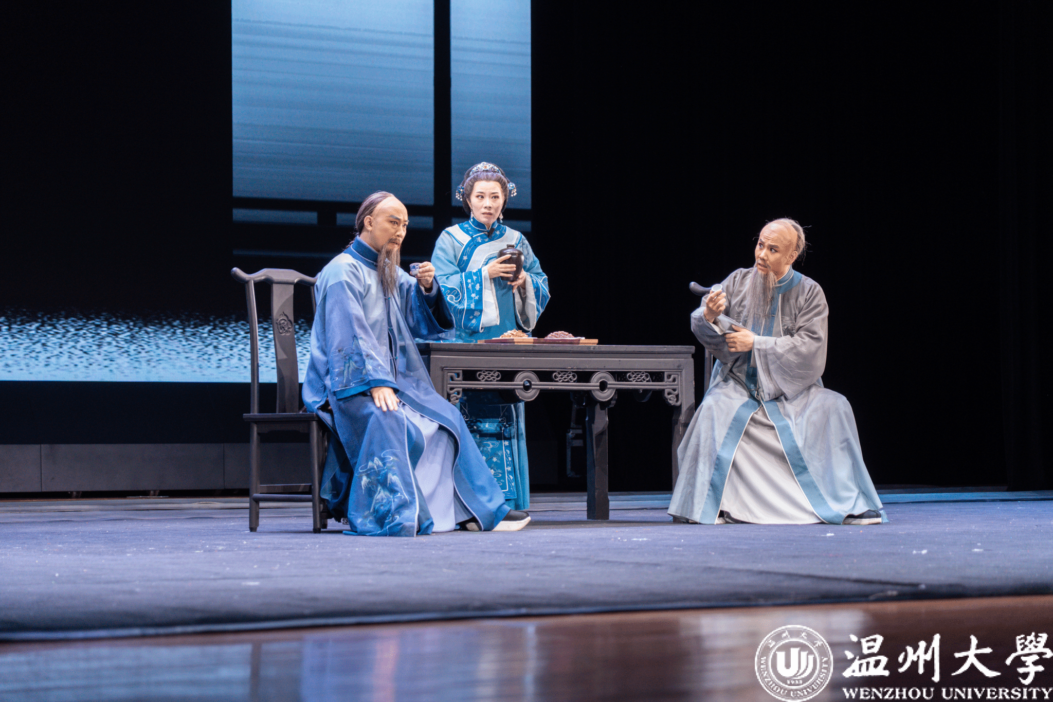 永嘉昆曲(简称“永昆”)作为昆曲的一个重要支派,是国家非物质文化遗产,其唱腔古朴婉转,表演细腻动人,具有独特的地域特色和艺术价值。此次演出让许多初次接触昆曲的学生感到十分新奇和震撼。音乐学院新生林同学表示感受到了永昆的独特艺术魅力,“这是我第一次接触永昆,与流行的短视频和电影相比,永昆唱腔悠扬,服饰精美,演员的一招一式都极具韵味。虽然节奏不如流行文化快速,但这种‘慢’恰恰让我沉浸其中,感受到中国传统艺术的浓厚。”生物专业研一新生张同学感慨道,作为在温州求学的外地学子,通过这部剧了解到了温州不仅是商业繁荣之地,更是文化积淀深厚之所。“让我对这座城市产生了更深的敬意和认同感,也激发了我去深入探索温州文化的兴趣。”