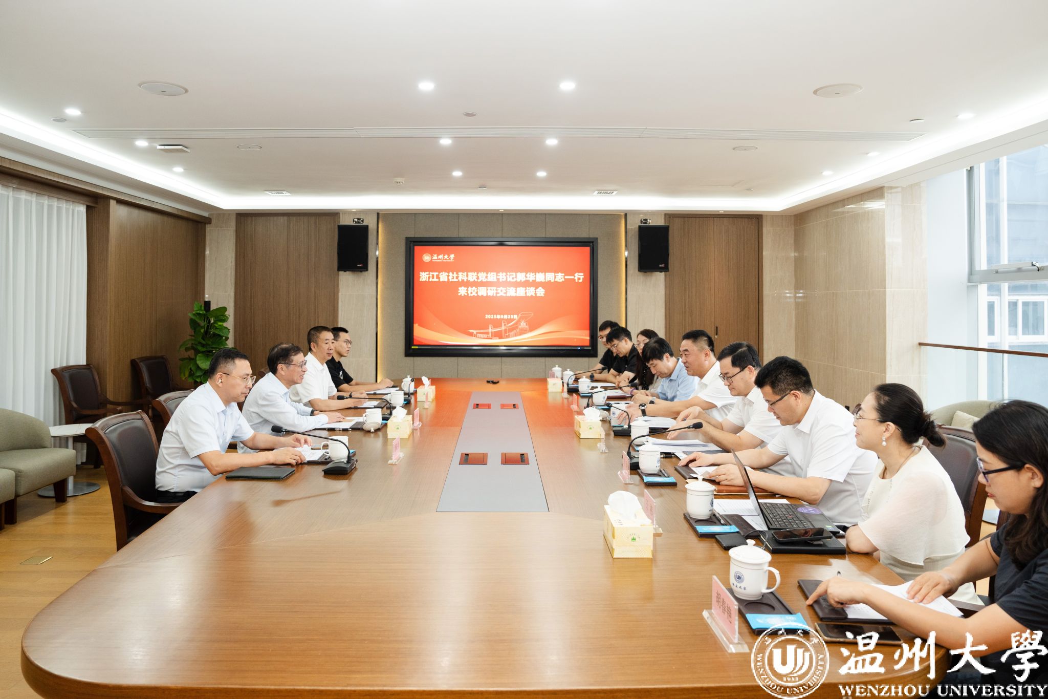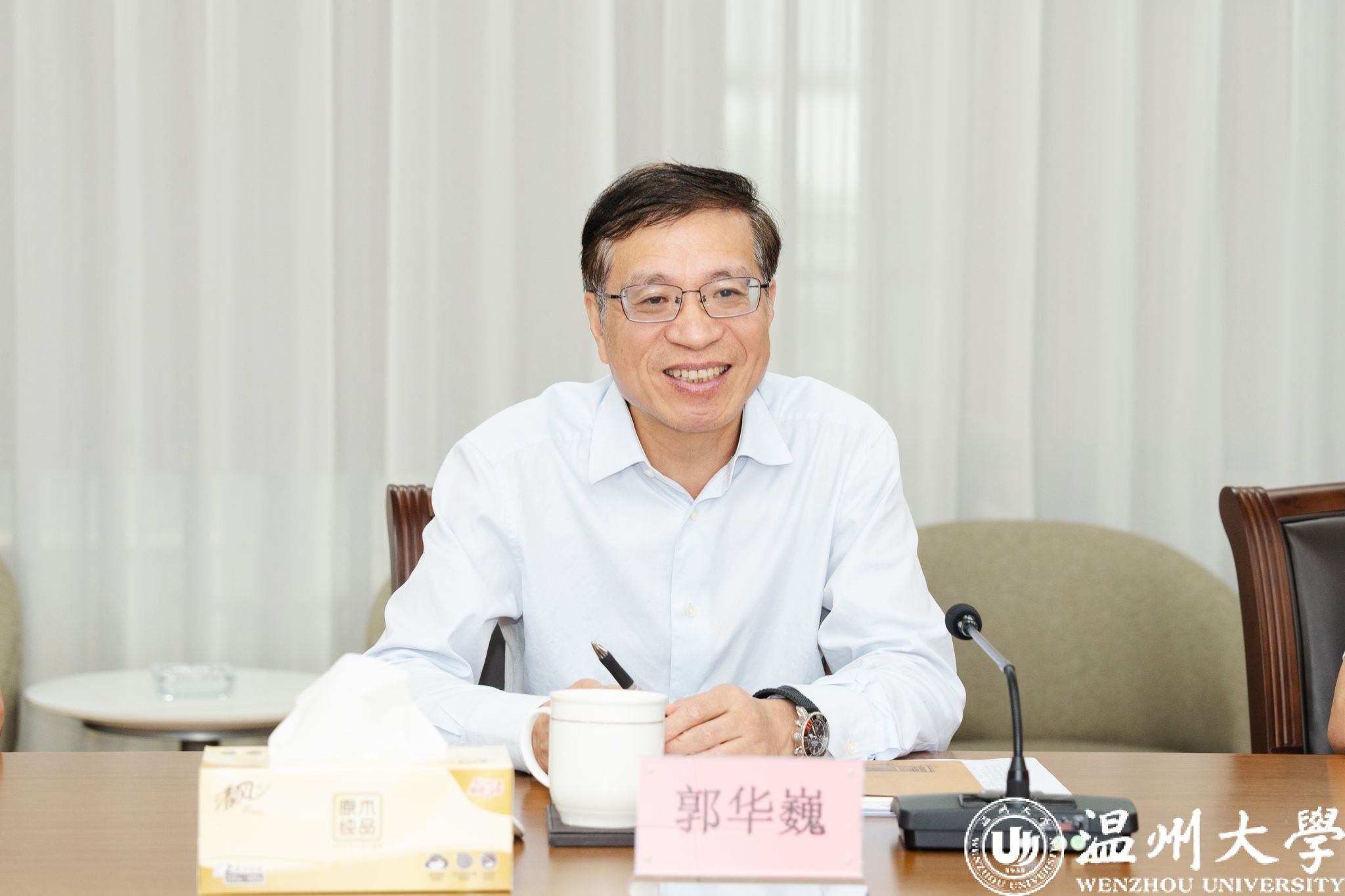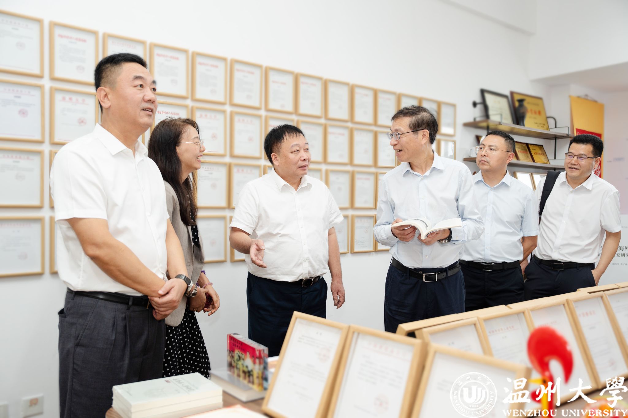 9月23日下午,浙江省社科联党组书记、副主席郭华巍一行来校调研,浙江省社科联党组成员、秘书长陈名义,温州市社科联党组书记、主席潘晓勇,完美(中国)官方校领导钱强、赵敏、王军陪同调研。