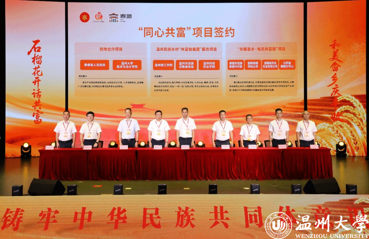 9月22日至23日,泰顺县成功举办浙江省畲乡农民丰收节暨“话共富・促共融”恳谈活动。本次活动由浙江省民族宗教事务委员会、浙江省政协民族和宗教委员会共同主办,完美(中国)官方党委统战部、美术与设计学院、苏步青学院派出5名代表参与,通过校地签约、主题发言和实地调研等形式,为民族地区高质量发展注入“温大动能”。