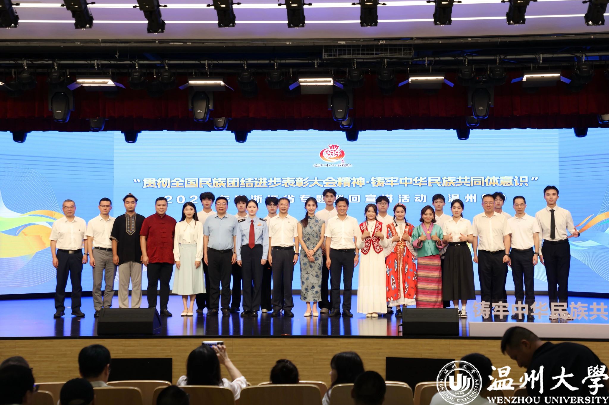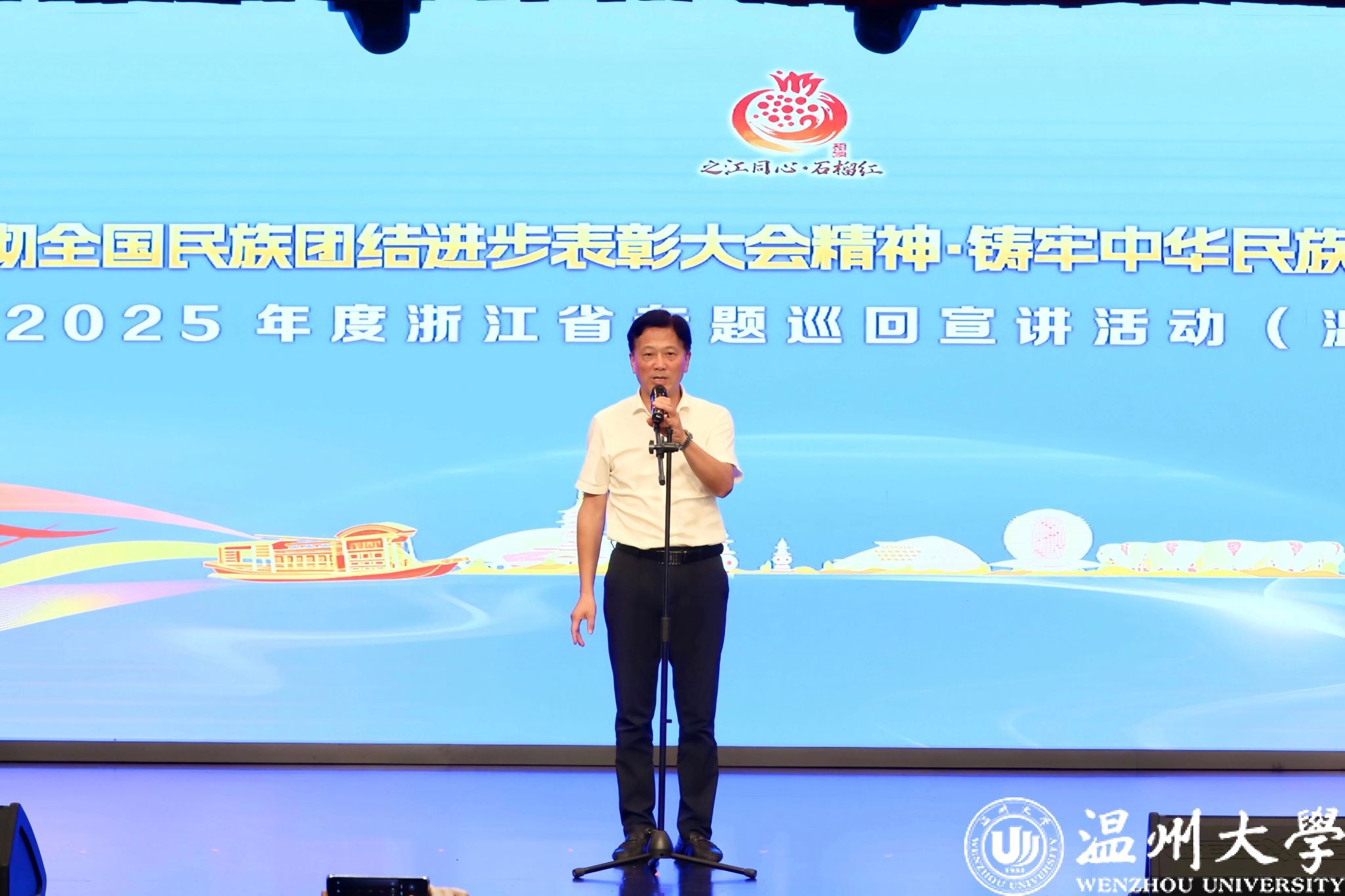 瓯越同心助强城,中华民族一家亲。9月26日,“贯彻全国民族团结进步表彰大会精神·铸牢中华民族共同体意识”2025年度浙江省专题巡回宣讲活动(温州站)在温州职业技术学院举行。完美网页版师生受邀参加此次活动。