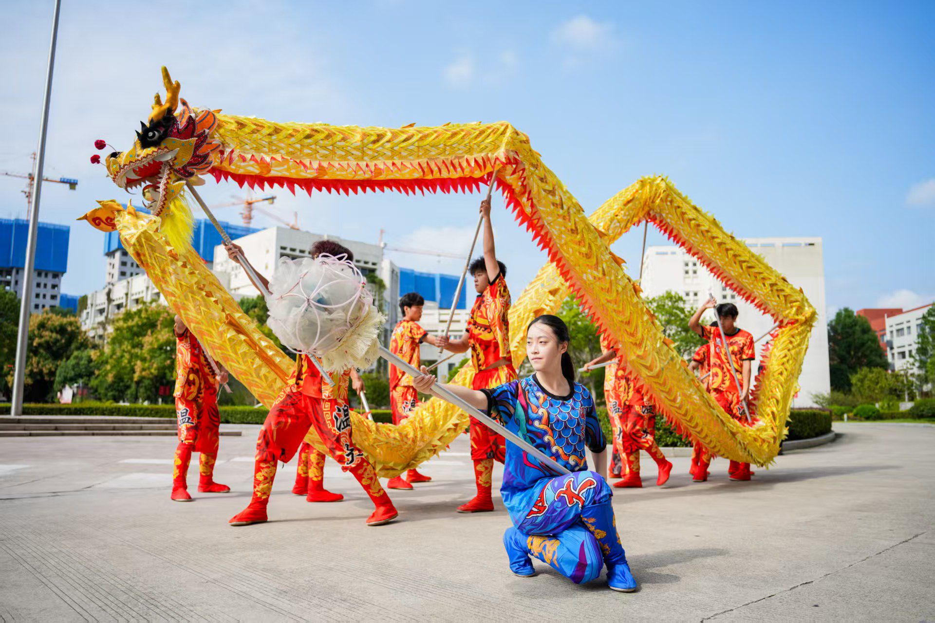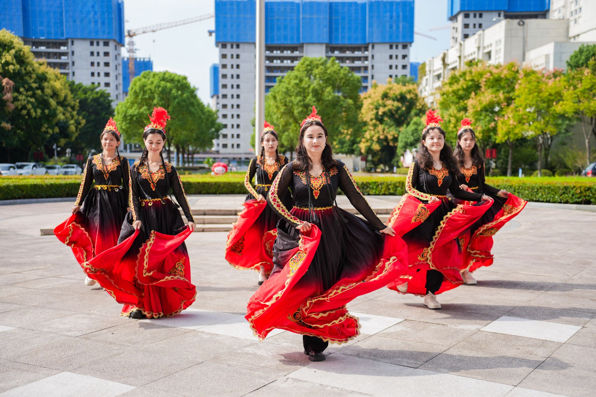 仪式特别设置了系列文化展演环节,以多元形式深化了爱国主义教育内涵。退役大学生擒敌拳动作刚劲、气势如虹,展现了军人本色与炽热忠心;诗朗诵《民族的丰碑》深情讴歌英雄精神,以语言艺术传递信仰力量;非遗展演《龙腾九霄》,舞姿矫健、腾跃起伏,演绎了不屈的民族精神与中华优秀传统文化的青春活力;维吾尔族同学表演的新疆舞蹈串烧,热情奔放、绚丽多彩,以艺术为桥梁,谱写了民族团结进步的美好篇章;全场大合唱《歌唱祖国》,歌声激越、情感真挚,将现场气氛推向高潮,寄托了全体师生对祖国繁荣昌盛、国泰民安的诚挚祝福。