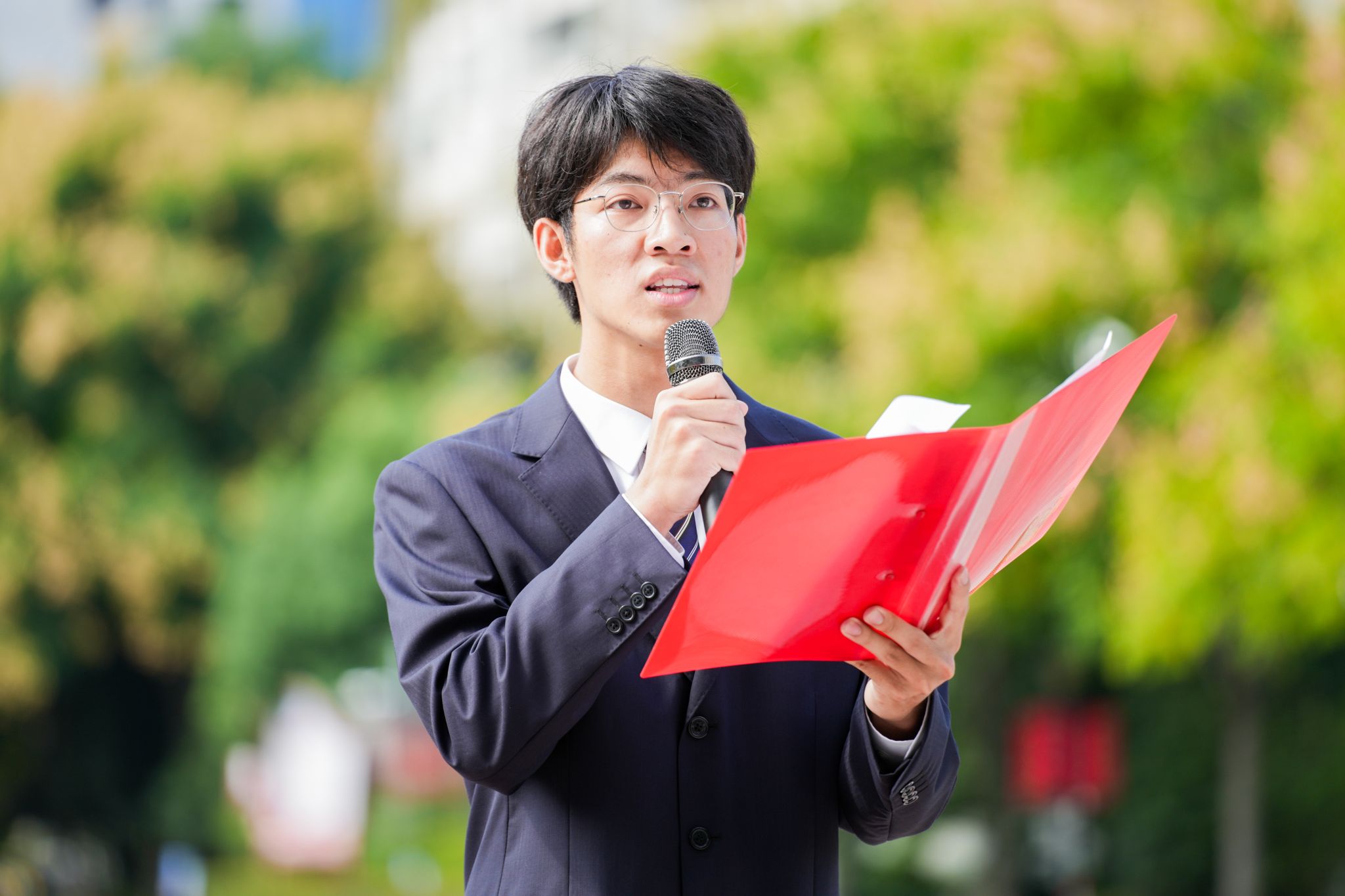 领读人李佳炳带领师生回顾抗战峥嵘岁月,致敬英雄先烈,并立足“百年未有之大变局”的时代背景,阐述新时代温大青年的责任与使命,发出“铭记历史、赓续血脉、勇担重任”的青春强音。