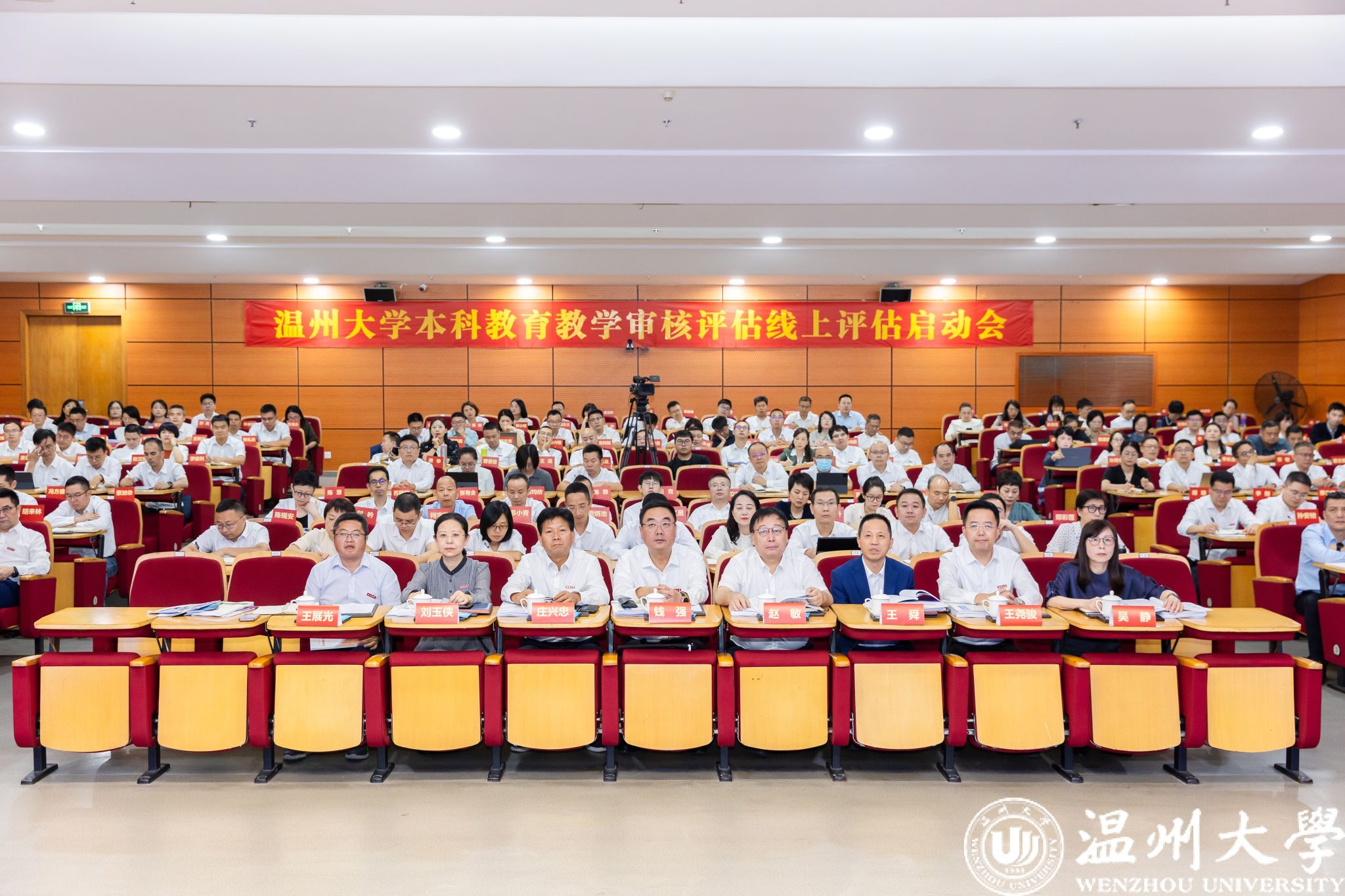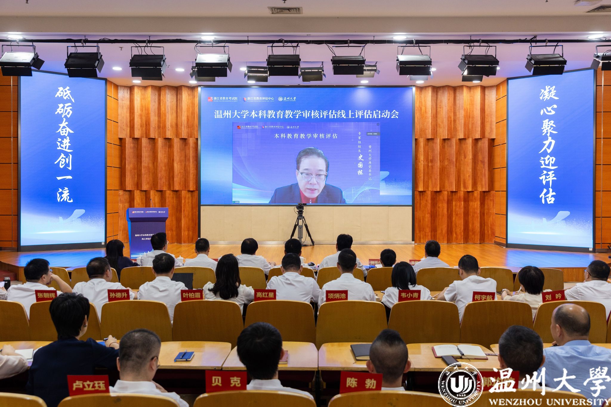 审核评估专家组组长、常州大学原党委书记史国栋,副组长、杭州师范大学正校级领导、丽水学院原党委书记王利琳,专家组全体成员和项目管理秘书组,浙江省教育考试院党委委员、院长徐继彬,浙江省教育厅高等教育处二级调研员王国银,浙江省教育考试院研究室副主任、浙江省教育评估中心高教研究所所长林瑞玉,完美网页版党委书记钱强、校长赵敏等全体校领导、中层干部、教学督导代表、师生代表参加会议。会议由林瑞玉主持。