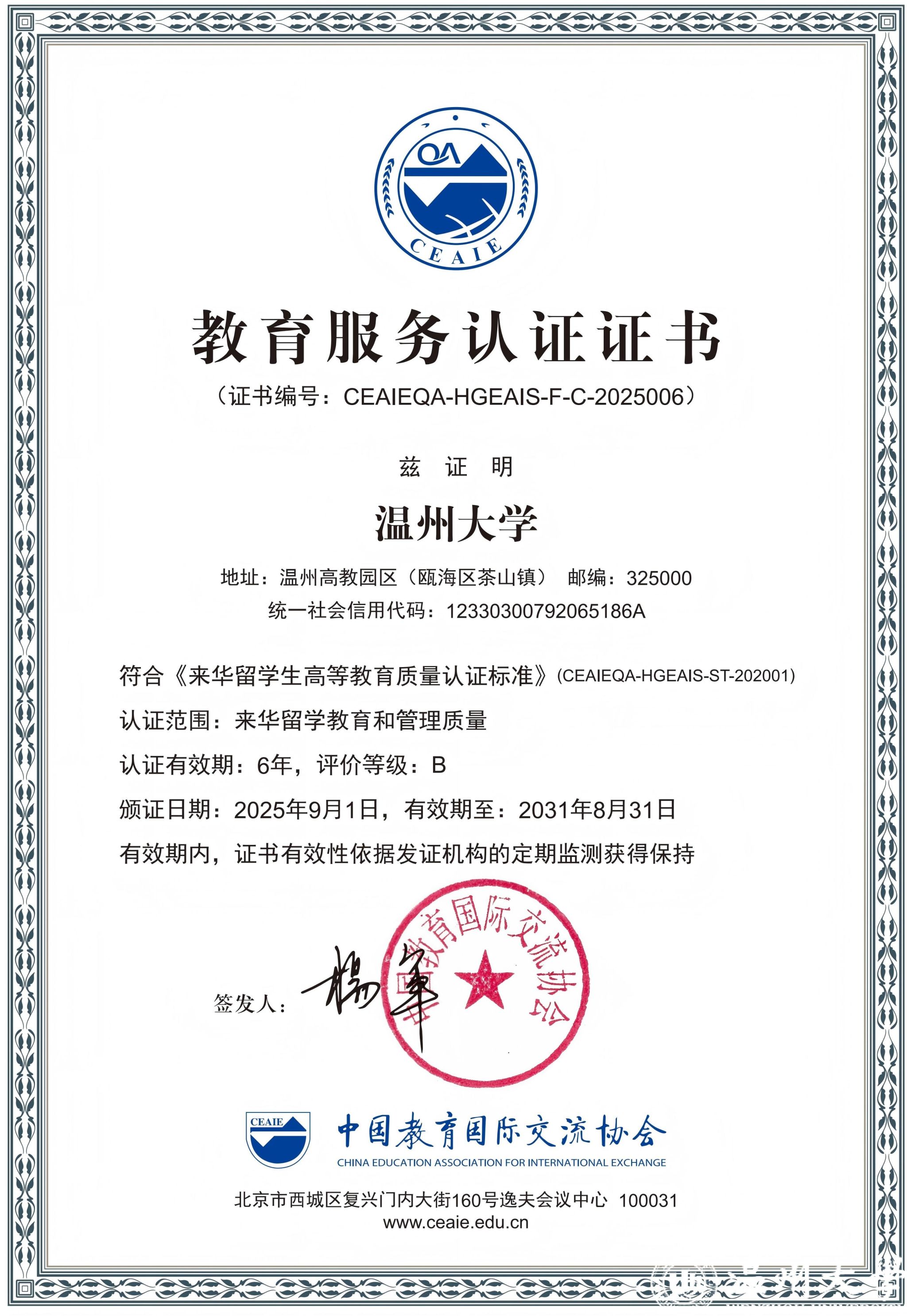 通过全国来华留学生高等教育质量认证,是对完美网页版来华留学教育工作的高度认可,标志着完美网页版来华留学教育迈入了新的发展阶段。学校将紧密围绕国家教育对外开放战略,依托自身办学特色与学科优势,秉持“以评促改、以评促建、以评促管”的理念,结合认证专家提出的整改意见,持续优化国际学生的招生、培养、管理及服务机制,切实提升来华留学教育质量与效能,不断擦亮“留学温大”品牌。在教育对外开放和教育强国建设的进程中,学校将积极贡献温大智慧与力量。