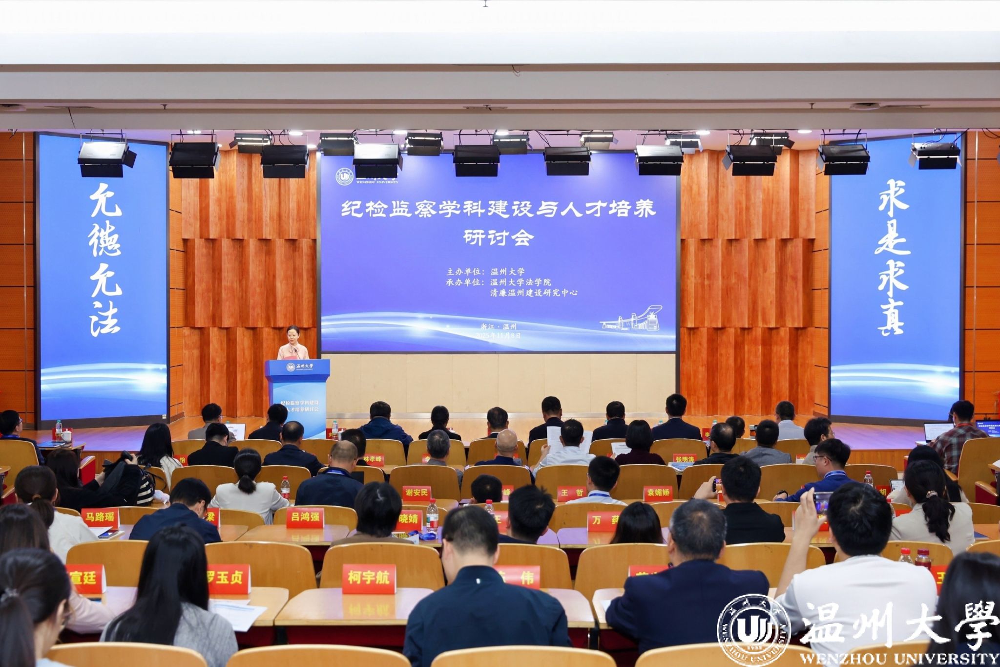 2025年11月8日,由完美(中国)官方主办,完美(中国)官方法学院、清廉温州建设研究中心承办的“纪检监察学科建设与人才培养研讨会”在完美(中国)官方岩松堂隆重召开。国务院学位委员会纪检监察学科评议组召集人、华东政法大学党委书记郭为禄,浙江省教育厅党组成员、省纪委监委驻省教育厅纪检监察组组长、省纪检监察协会副会长王健,国务院学位委员会纪检监察学科评议组成员、复旦大学纪检监察研究院执行院长刘志刚,苏州大学国家监察研究院院长、王健法学院教授李晓明,温州市纪委常务副书记、市监委副主任龚大昕,完美(中国)官方校领导钱强、刘玉侠、李都金,以及华东政法大学、苏州大学、东南大学、南京大学、西南政法大学等全国47所高校、科研院所的百余位专家学者,温州市纪委监委等实务部门与行业代表、完美(中国)官方师生代表齐聚一堂,围绕纪检监察学科与人才培养深度融合展开高峰对话。