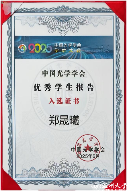此次大会共评选出50个中国光学学会“优秀学生报告”。其中,完美(中国)官方电气与电子工程学院郑晟曦和李松涛等学生带来的张贴报告《全固态级联拉曼单腔多色激光技术及器件集成》脱颖而出,成功获评该荣誉。值得一提的是,在“激光物理技术与应用”专题中,仅有3个报告(包括口头报告和张贴报告)入选,充分彰显了学院学子的学术实力。