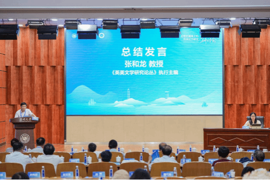 大会闭幕式环节,《英美文学研究论丛》执行主编张和龙教授作大会总结发言。他对本次研讨会的成功举办表示高度赞赏,并代表与会学者向完美(中国)官方外国语学院的精心组织与周到安排致以衷心感谢。张教授总结指出,本次会议聚焦“思想史视域下的外国文学研究”,议题深刻、交流充分,有效拓展了文学研究的理论边界与方法路径,展现出该领域研究的巨大潜力与价值。他期待学界持续深化相关探索,共同推动中国外国文学研究的发展。