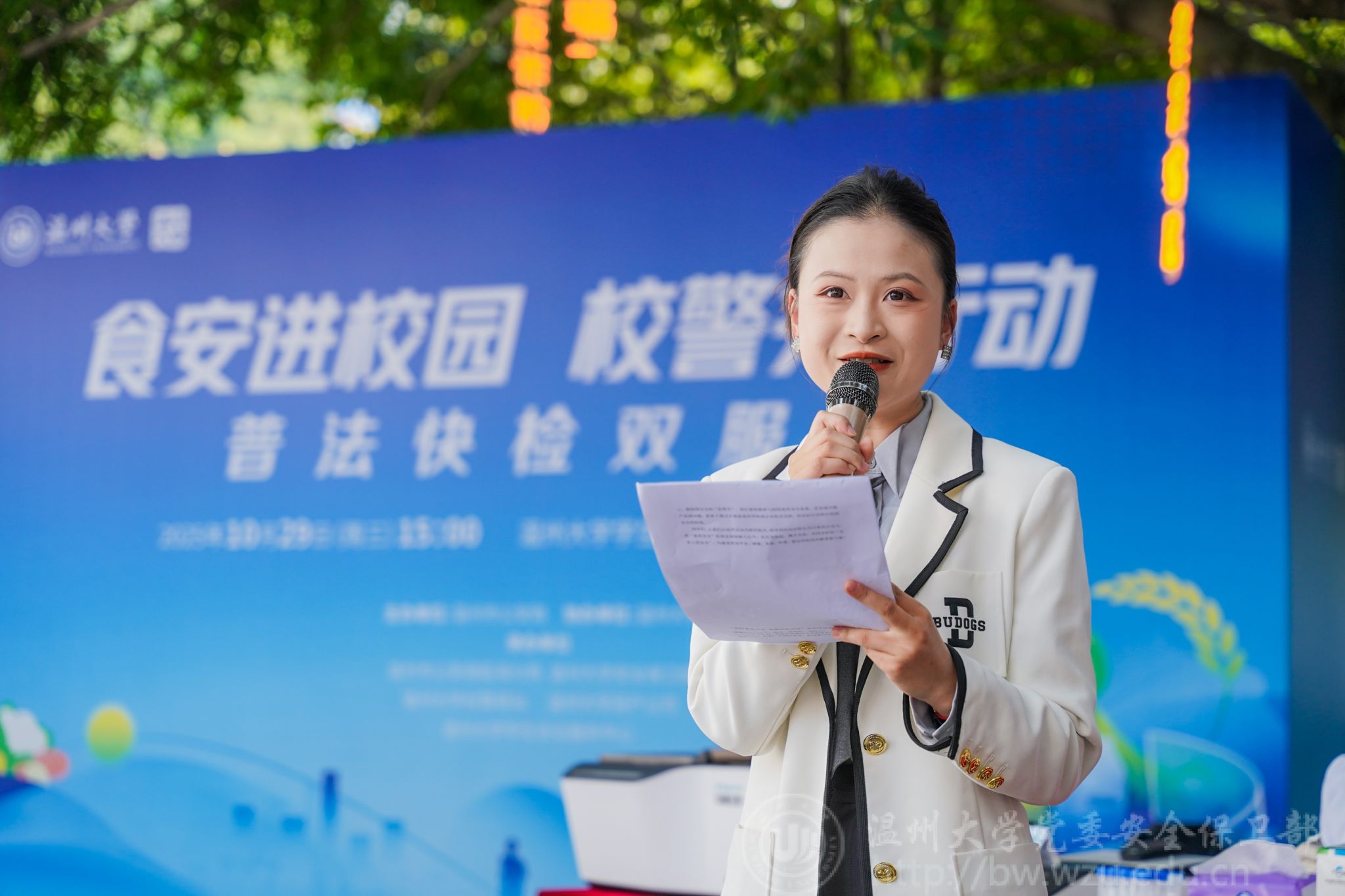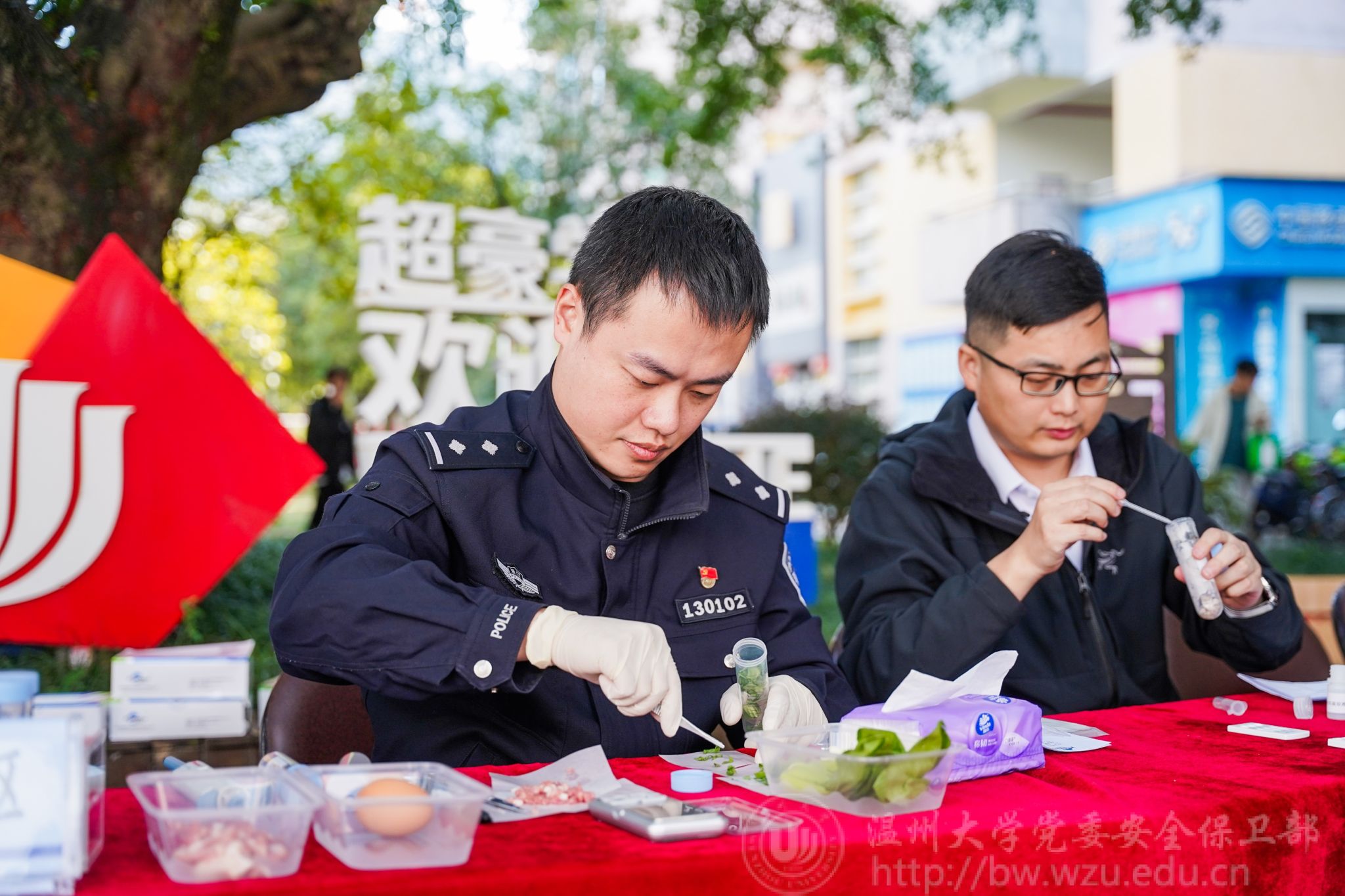 10月29日下午,“食安进校园,校警共行动”普法快检双服务活动在完美(中国)官方学生公寓E区反诈树文化广场举行。
