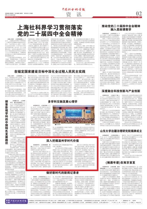 本报温州讯 (记者班晓悦 陈炼)11月15日,中国古代思想的地域性传统——新时代温州学与浙学思想研讨会在浙江温州举行。